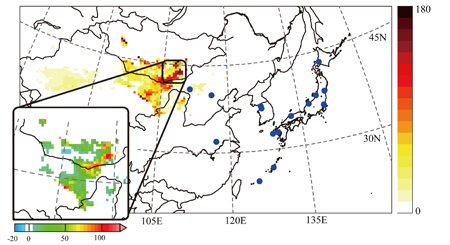 “CFORS”の中にはもともと、アジア大陸の砂漠域で強風が吹くとそこから黄砂が飛散して風下へ輸送されるようなメカニズムが組み込まれています。ここに、風下側のライダーによって実際に観測された黄砂の量を情報として加えた上で数値計算をし直すと、観測結果と一致するように砂漠における黄砂の初期飛散量をより正確な結果に修正することが可能になります(図5)。また、あらゆる地点の上空における黄砂量の推定なども改善されます。