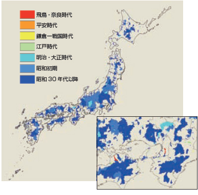 Q:この研究を進めるに当たっては、最初に何が必要とされたのでしょうか。亀山: 日本全国規模で、流域が「いつ、どこで」ダムなどの河川横断構造物によって分断されたのかを空間的に把握することです。まず、これらをデジタル情報として整理し、次のステップで流域が分断された年代とその集水域を示した日本全国流域分断マップを作成し始めました。マップは2000年に作成を始め、2002年に完成しました(図1)。