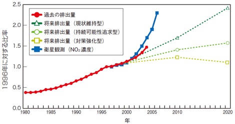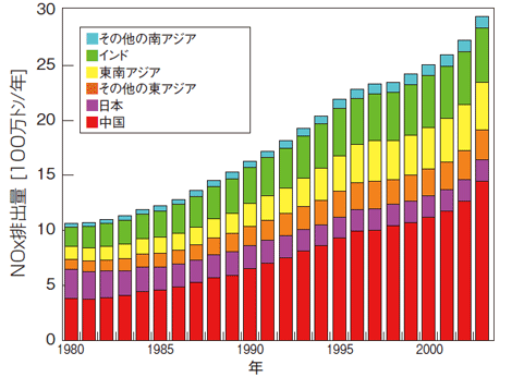 アジア地域の大気汚染排出量が増加