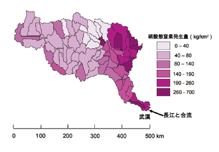 図3 長江支流の漢江流域における硝酸態窒素発生量の推定値分布