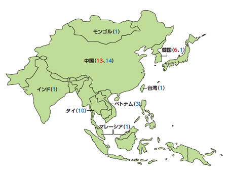 図5 2011年3月末のアジアにおける国際共同研究の推進状況