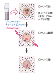 図5 培養細胞へのエレクトロポレーション法による高分子化合物の導入メカニズム