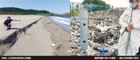 Q:震災対応の研究組織はどうつくったのですか。大垣:研究者の専門の立場を尊重することに重点を置いて、組織をつくりました。研究所には資源循環・廃棄物研究センターや地域環境研究センターなど8つのセンターがありますが、それぞれのセンターが自由に判断して活動できる体制にしました。そのため、研究者はこれまでの研究や専門性をもとに、自ら活動することができました。たとえば、仙台の蒲生干潟の調査は、震災前から行っていましたが、震災後も継続することで津波の影響が明らかになっています(図2)。