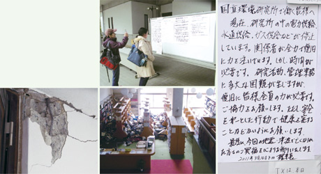 Q:研究所では、どんな被害がありましたか。大垣:震源地からは離れていますが、つくば市でも震度6弱を観測し、激しく揺れました。建物の損壊も大きなものでした。電気や水道などのライフラインが止まり、復旧までに2週間くらいかかりました。実験室の機械などは止まってしまいましたし、何とか実験が再開できるようになるまでに、1ヵ月はかかりました(図1)。