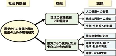 東日本大震災、および福島第一原子力発電所の事故は、通常の廃棄物とは性状が大きく異なる廃棄物の処理技術、放射性物質の環境動態と環境影響、大規模災害時の環境健康リスクなど、今後研究すべき多くの課題が存在することを浮き彫りにしました1)。その結果、社会基盤の復興、地域社会の再生などに取り組む上で、環境研究に対する期待が大きく広がりました。