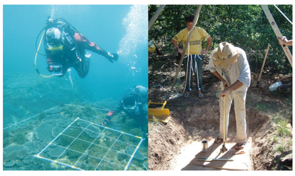 また、陸からの負荷を減らすためには、サンゴを調べるだけでなく、人々の社会を知る必要があります。サンゴ礁は、さまざまな分野との学際的な調査研究活動の場です。どうすればサンゴ礁を維持できるのか、その可能性を明らかにし、具体的な対策につなげていきたいと思っています。