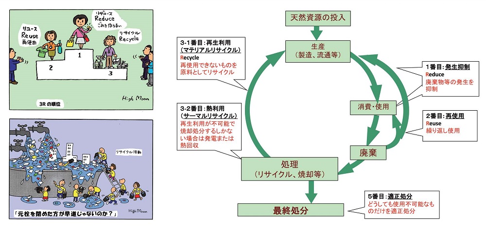 しかし、家電リサイクル法や小型家電リサイクル法のような電気製品のリサイクルに関する法律では、リサイクルだけを推進しているといわれることもあります。そこで、リデュースやリユースをどのように促進するかが今後の課題です。