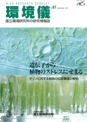国立環境研究所では、設立以来約40年に渡ってこの課題に取り組み、様々な施設や手法を用いて研究してきました。初期の生理・生化学的研究から得られた知見を基に、オゾンによる活性酸素生成やその作用による障害の仮説を提案し、遺伝子レベルで検証しました。また、オゾンによる障害に植物ホルモンの一つであるエチレンが関与していることに注目し、遺伝子組換えによりオゾンに強い植物を開発することにも成功しました。さらに、今世紀初めから急速に進展してきたモデル植物の網羅的な遺伝子分析から得られた知見を利用した分子遺伝学的研究により、植物のオゾン応答に関与する遺伝子について新たな知見を次々と明らかにしてきました。