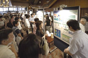 6月16日(土)に京都会場(シルクホール),6月24日(日)に東京会場(メルパルクホール)にて,国立環境研究所公開シンポジウム2007が開催されました。研究所の活動を幅広く社会に知っていただくことを目的としたシンポジウムも今年で10回目を迎え,「未来を拓く環境研究-持続可能な社会をつくる-」をテーマに,大塚柳太郎理事長による基調講演に引き続き,4題の講演,24題のポスターセッション(講演者ポスターを含む)を行いました。今回のテーマは広い分野をカバーしていましたが,個々の講演者は,リハーサルでの指摘をふまえて,各自の研究の細かい点をわかりやすく講演しました。ポスター会場では質疑応答も活発で,本研究所の20名を超える説明者がフル稼働で皆様の知的好奇心にお答えすることができました。今年から,講演終了後のポスターセッションに4人の講演者も参加することにしましたので,講演会場で質問できなかった疑問点を参加者がとことん聞くことができるようになりました。