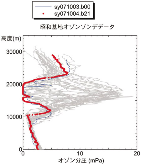 南極昭和基地では,オゾンホールの観測のために,これまで主に気象庁によって,「ドブソン分光計」,「ブリューワ分光計」,「オゾンゾンデ」などによる観測が行われてきていました。その中でも,1982年・第23次南極地域観測隊によってオゾンの大幅な減少が世界ではじめて確認され,国際会議等で発表されたことは,日本の南極観測史上においても,大きな成果のひとつと位置づけられています。その後英国の研究者らによる1985年のNatureの論文によって,オゾンホールは世界的に脚光を浴びるようになったのです。