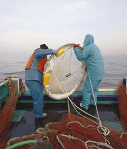 一方,東京湾で漁具等を用いて調査研究を行う際には,国の法令や都道府県の規則により,海上作業許可(海上保安部)と特別採捕許可(都県知事)を得なければなりません。特別採捕許可は,関係漁協等の同意を前提に1年間有効ですので,通年調査では年1回取得します。一般に郵送で申請書を受け付けてもらえます。一方,海上作業許可の有効期間は3ヵ月間。通年調査の場合,年4回申請せねばなりません。また,申請書の提出先が6~7ヵ所に及び,申請書が郵送不可(持ち込みのみ)なので,申請の手間は相当です。