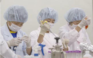 新型インフルエンザの感染の脅威が高まる中で,「手洗い」と「うがい」は個人で出来る感染防止の方法として推奨されていますが,その具体的な方法については明確ではありません。そのため,生徒たちは意欲的にこの実験に取り組み,1日目のうがいなどの実験では,実験ごとに,乳酸菌飲料を飲み,希釈と,乳酸菌が育ちやすく調整した寒天培地へのスタンプを繰り返して行いました。どの子の目にも真剣さが表れていました。2日目には,サンプル用寒天培地の24時間目の細菌数を数え,計算の仕方や図表の作り方を学びました。3日目には,各自の寒天培地(1人あたり42枚)の細菌数を数え,表を作って無事終わりました。12月にはこの実験をまとめてポスターにして発表する機会があります。どのようにまとめるのか楽しみです。