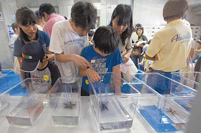 “地球温暖化あなたの疑問に研究者が答えます”をテーマにした「ココが知りたい温暖化」講演会では、温暖化に関する数々の疑問について研究者が直接お答えいたしました。また、サメやタコのタッチプールでは実際に海の生き物に触る体験や、電動自転車の試乗、生物多様性に関する話題など興味深い展示や催し物も数多く実施しました。なお毎回行っております「環境報告書を読む会」では、新たな試みとして研究所内の植栽を見ながら解説するツアーを行いました。(詳しくは次の記事を参照)