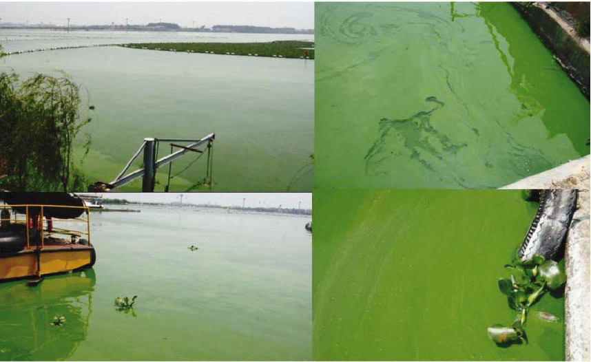 中国では、地表水水域の使用目的と保護目的に従い、最も軽いⅠ類から汚染が劣悪な劣Ⅴ類まで水域機能を段階的に分類されています。2010年現在、松花江、遼河、海河、黄河、淮河、長江(揚子江)、珠江など七つの水系(図1)に対して、水質観測の結果、59.9%がⅠ~Ⅲ類水質、23.7%はⅣ、Ⅴ類水質、残りの16.4%はⅤ類水質より悪い状況にあります(図2)。また、湖沼・ダム湖については、61.6%がV類水質基準を満たさず、水源地および景観用水としての価値を失ってきています。主な汚染物質は全窒素(TN)と全リン(TP)であります。太湖、滇池(デン池)と巣湖の水質汚染は最も深刻であります。これまで、二十年以上にわたって汚染防止施策を行ってきましたが、水質の改善が見られていません(写真1)。また、汚染が進んでいる海域として、遼東湾、渤海湾、長江河口、杭州湾、蘇州近海、珠江河口と沿海部の大都市に近い海域が挙げられています。