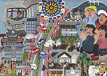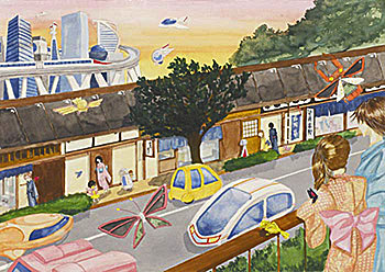 夏の大公開において、「国立環境研究所 絵画コンテスト」の応募全作品の展示、入選作品の表彰式をおこないました。この絵画コンテストは、次世代を担う若い世代に環境問題や環境研究への関心と理解を深めていただくことを目的として、全国の中学生を対象に実施しました。今回のコンテストのテーマは「20年後の未来都市」と題して、環境にやさしい街や周囲の自然を含めた都市域の将来の姿に関する絵画を募集し、321点の作品の応募がありました。ご応募いただいた方々、誠にありがとうございました。