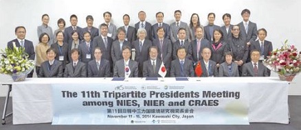 第11回日韓中三カ国環境研究機関長会合(The 11th Tripartite Presidents Meeting among NIES, NIER and CRAES: TPM11)が、平成26年11月11~14日に、神奈川県川崎市および山梨県富士吉田市において開催されました。今回の会合は日本で開催される4回目のTPMで、国立環境研究所(NIES)の主催、国立環境科学院(NIER-韓国)と中国環境科学研究院(CRAES-中国)の共催であり、また川崎市と環境省生物多様性センターの後援を得ました。TPM11では、2日目に本会議が、3日目に国際ワークショップが、そして1日目と4日目に環境関連施設のスタディツアーが企画されました。