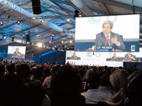 国立環境研究所は、2014年12月1日から2週間、ペルー・リマで開催された気候変動枠組条約(UNFCCC)第20回締約国会議(COP20)及び京都議定書第10回締約国会合(CMP10)に参加し、気候変動に関する最新の研究成果を紹介しました。地球環境研究センターの横田達也衛星観測研究室長、環境計測研究センターの松永恒雄環境情報解析研究室長、Pang Shijuan高度技能専門員、社会環境システム研究センターの久保田泉主任研究員、藤野純一主任研究員、朝山由美子特別研究員が参加しました。