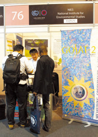 当研究所はCOP20/CMP10会場の展示ブースにて、AIM、温室効果ガス観測技術衛星「いぶき」(GOSAT)及び温室効果ガス観測衛星技術衛星2号(GOSAT-2)による最新の研究成果・計画等を展示しました。