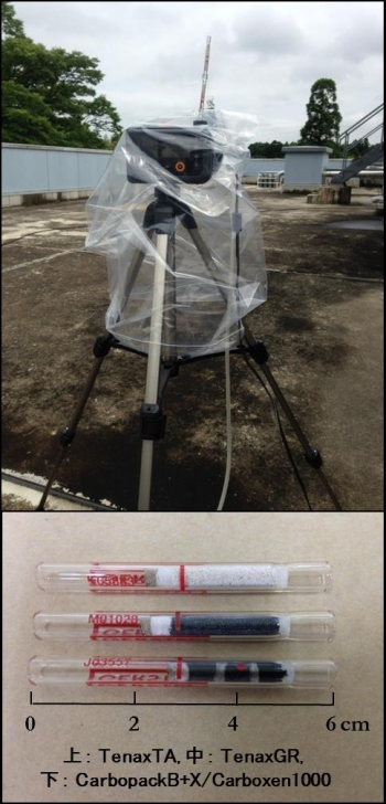 下:化学物質を集めるための吸着剤が充填された小型吸着管