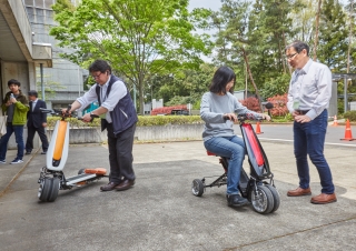 「春の環境講座」は、概ね高校生以上を対象としていることもあり、子供向けの企画は少ないのですが、体験イベント「人より早く体験しよう、今しか乗れない近未来の快適乗り物」では、普段乗ることができない極小電動モビリティに体験乗車することができ、子供から大人まで楽しめる企画でたくさんの試乗希望者が訪れました。