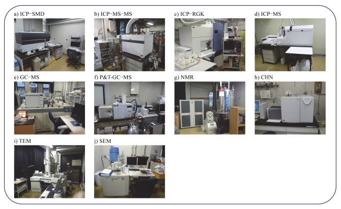 環境計測研究センターでは、8 つの大型施設-(1)基盤計測機器(化学分析機器群。写真 1)、(2)タイムカプセル棟、(3)化学物質管理区域、(4)大気モニター棟、(5)高度化学計測施設(同位体 ICPMP など)、(6)加速器質量分析(AMS)施設、(7)磁気共鳴イメ ージング施設、(8)光化学反応チャンバー-を主体的に運営しています。この内、(1)は環境標準物質事業と関連するだけでなく、所内研究者からの依頼分析を受け付ける形で、所内での化学分析支援の機能を果たしています。(2)、(3)、(4)などの施設は、複数の研究センターの研究者も利用する共同研究の場の提供にもつながっています。また、(5)~(8)の施設は、他の研究機関に比べても特異性・優位性を持った施設であり、所内外の研究プログラム・プロジェクトにも貢献しています。これらの大型施設を維持・運営していることは、特に環境化学物質の観点から研究所の横串的な機能と支援的な機能を環境計測研究センターが果たす原動力の一つとなっています。