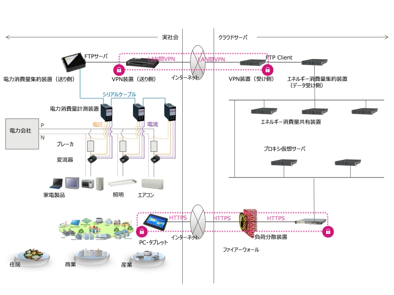 国立環境研究所(以下、国環研)を中心に環境省や富士通株式会社などの産官学連携により進めているエネルギーモニタリングシステム開発事業は、エネルギーの中でも電力を対象にしてリアルタイムで電力消費量を測定し、データの集約、分析とWebを通じて見える化する一連のシステムを開発するとともに、実際にシステムを設置してシステムの実社会における有効性を検証する(社会実装する)ものです。