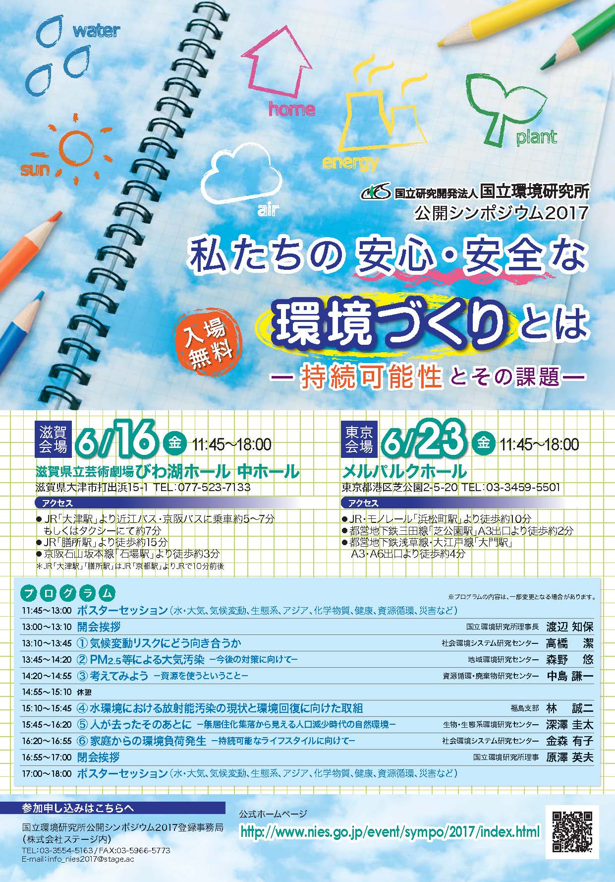 国立研究開発法人国立環境研究所 公開シンポジウム2017『私たちの安心・安全な環境づくりとは-持続可能性とその課題-』開催のお知らせ