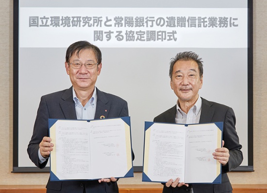 また、この寄附金制度改正の一環として、昨今の寄附方法の多様化ニーズに応えるため、2021年9月11日に、株式会社三井住友銀行(以下、三井住友銀行)および株式会社常陽銀行(以下、常陽銀行)と遺贈寄附受付への協力に関する提携契約を締結しました。遺贈寄附とは、遺言によって、ご自身の遺産を寄附することです。国立環境研究所では、遺贈寄附を希望する方に対して、提携銀行である三井住友銀行と常陽銀行をご紹介いたします。提携銀行が提携信託会社等と連携して行う遺言信託(遺言書作成から遺言書の保管、遺言の執行を引き受ける業務)のサービスを活用し、遺贈の意志を伝えるための遺言文書作成のお手伝い・保管・遺言の執行について、ご相談いただくことが可能です。