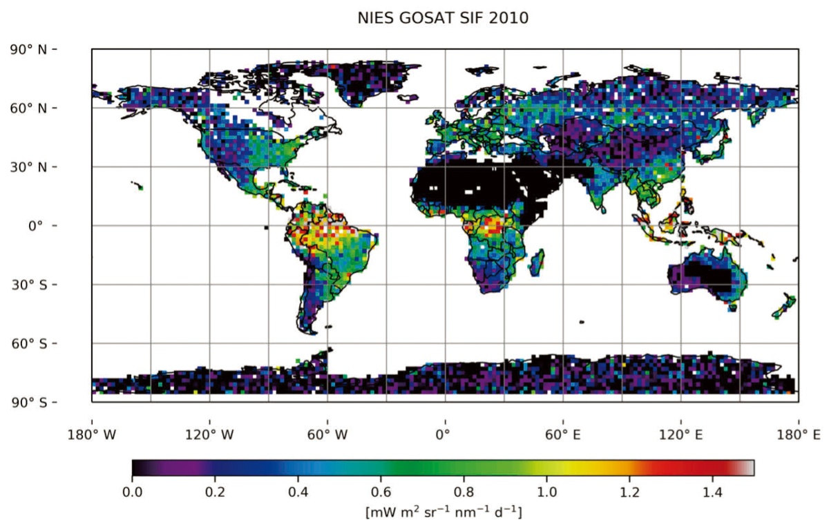 クロロフィル蛍光自体は古くから知られる現象でしたが、GOSATによるSIF観測の成功が契機となって、リモートセンシングや植物生理学、モデル、生態学など、SIFに関連した研究が大きく前進しつつあります。今後、これらの研究結果を取り入れることで、SIFによる高精度な植生CO2吸収量推定が行われ、気候変動対策に活用されることが期待されています。