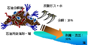 1997年に日本海でナホトカ号による重油流出事故が発生して以来、その後も内外において、規模の大小にかかわらず断続的に海洋流出油事故が発生している。流出油で汚染された海岸を浄化するために、汲み取りや掘削のような物理的手法や薬剤を用いる化学的手法が適用されてきた。これらに加えて、近年、汚染現場に生息する石油を分解する微生物を活用した原位置での環境修復法、いわゆるバイオレメディエーション法の適用が検討されてきている。石油の微生物分解にとって一般的な油汚染海域では窒素・リン等の栄養塩が不足している。海洋流出油のバイオレメディエーションの場合、これら栄養塩を外部から付与する手法が主にとられててきている。しかし、我が国での汚染現場における本手法の実施例は僅少で、学術・公的機関により公正に評価された事例はほとんど皆無であった。