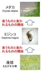 実際の自然生態系では、生物はそれぞれの役割を担いながら生きています。例えば湖や池などの水系の生態系では、藻類(植物プランクトン)は光合成による有機物の生産を、ミジンコなどの1次消費者は生産者を摂食し、自らは捕食者の餌となることによって生態系内の物質循環を支えます。このように栄養段階の違う生物は、生態系における役割が大きく異なり、それぞれの種の個体群に対する影響が同じでも、生態系全体に対する影響は異なると考えられます。