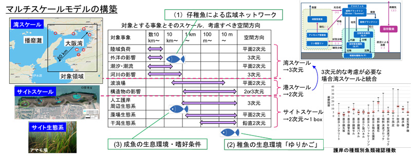 湾スケールの流動構造・物質循環・生態系ネットワークとサイトスケールの水質・生態系の